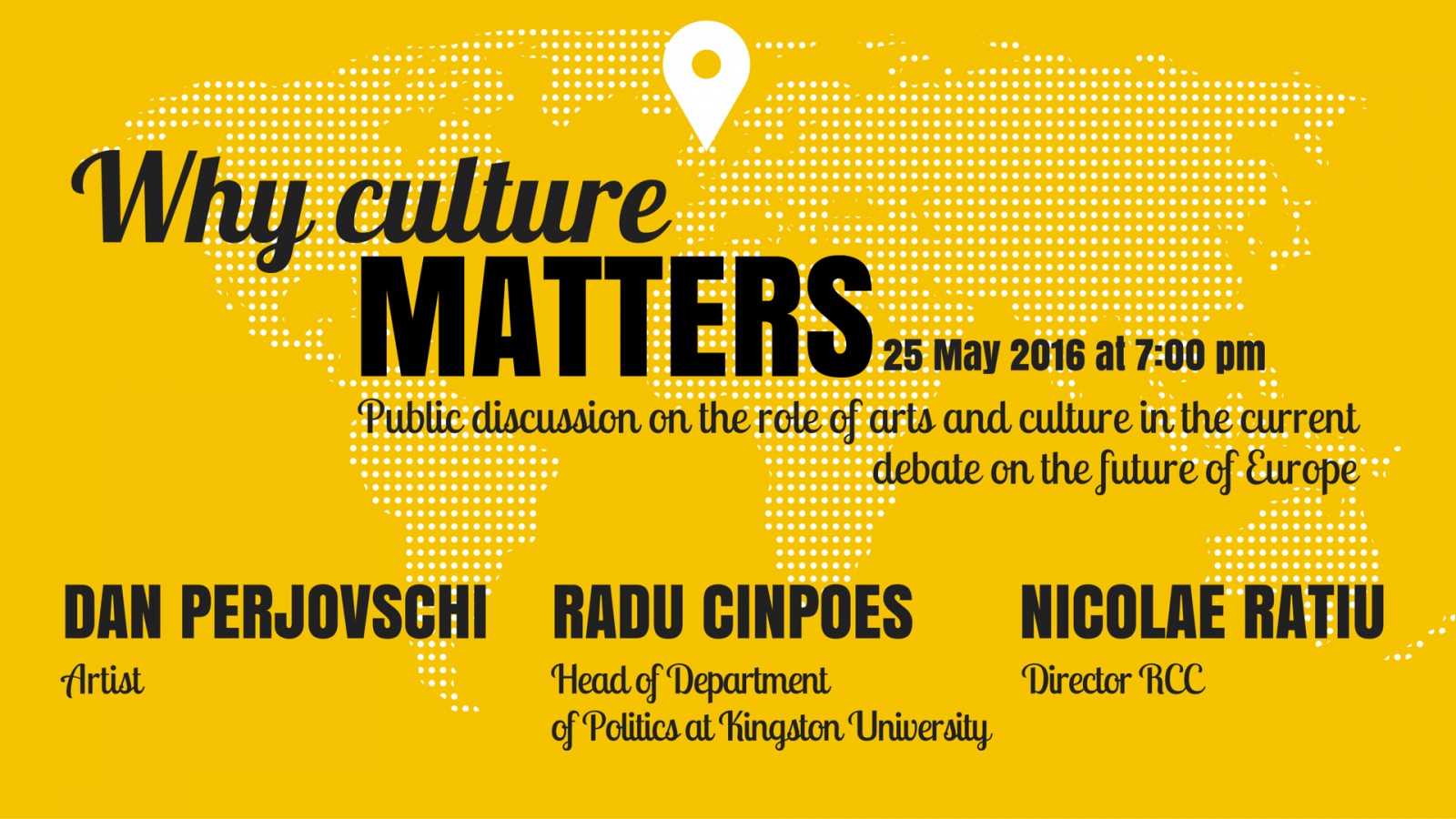Our guest speakers Radu Cinpoes, Head of Department of Politics at Kingston University and artist Dan Perjovschi will take a historical and cultural perspective on Europe and try to argue why culture really matters.
