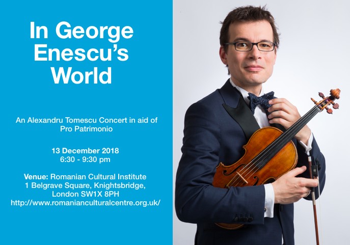 Join us on 13th of December from 18:30 at the Romanian Cultural Institute, No 1 Belgrave Square, London SW1 where Alexandru Tomescu will perform compositions from Bach, Enescu, Filip and Porumbescu.
